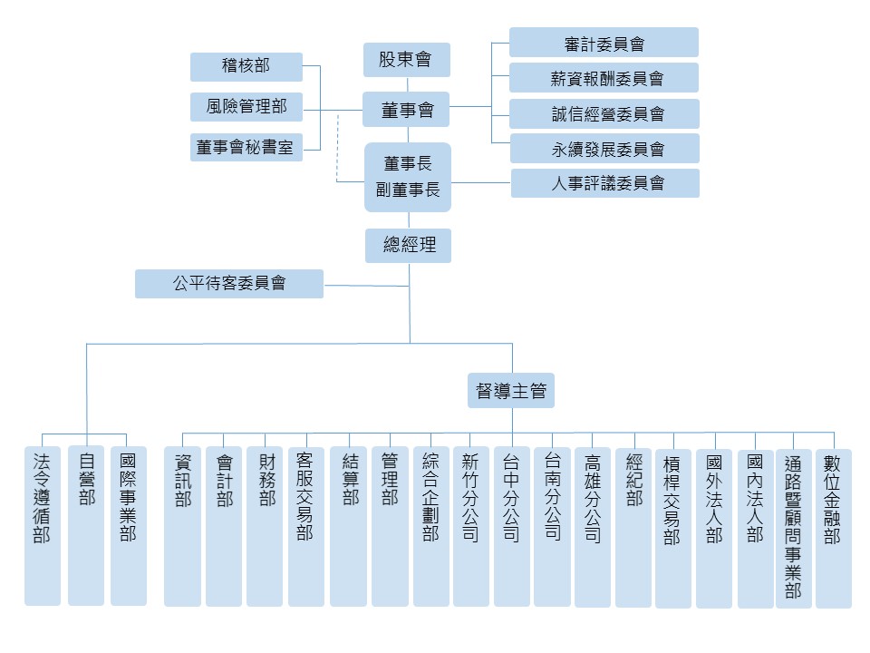 董事會秘書室 | 負責董事會及審計委員會相關事務,公司治理事務之推動,公司股務及主管機關證照申請換發事宜。 |