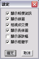 (1)按下設定紐, 可做顯示設定,勾選欲顯示資訊按下確定即完成顯示設定 。