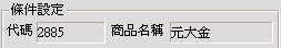 品名稱,點選後,條件設定上方顯示所點選的商品代碼及名稱,