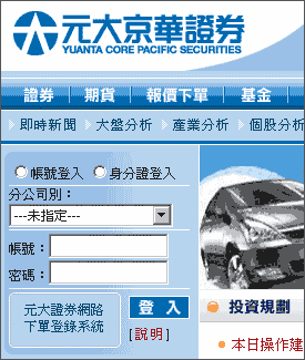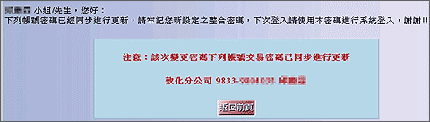 若您是總公司經紀部客戶,帳號 1234567,電子交易密碼 0987 |