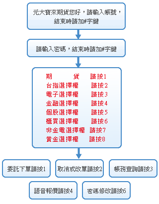 元大寶來期貨的語音按鍵系統,是一個提供客戶使用無障礙的電子交易通路,客戶只要透過一般的電話撥通後,語音系統就會自動引導客戶輕鬆完成整個下單動作。同時為服務全體元大客戶,尚還提供語音報價及即時成交回報功能,讓客戶享受最貼心的服務!