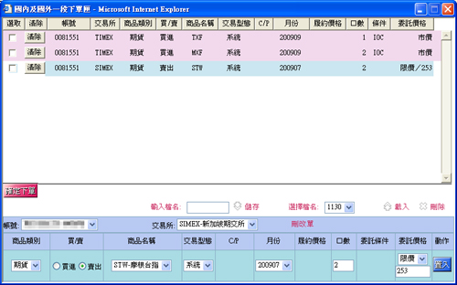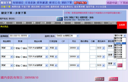 預設多筆委託商品置放於下單匣,可同時下單或選取下單。 |