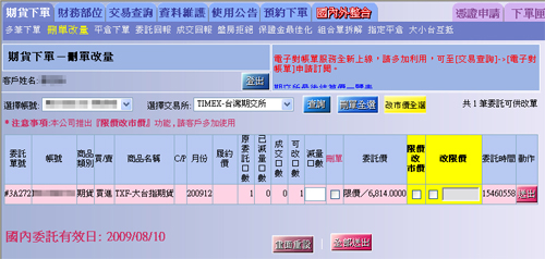 提供【減量口數】或【刪單】及【限價改市價】或【改限價】功能。 |