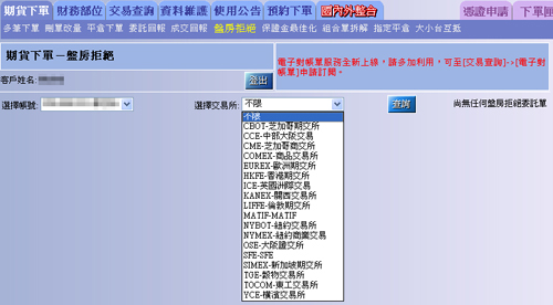 點選【帳號】及【交易所】按下【查詢】,畫面將會顯示當日國外網路下單
