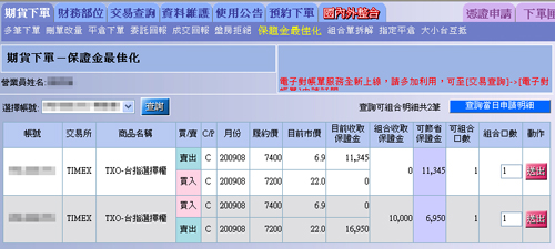 | 提供選擇權保證金最佳化及查詢明細。 |