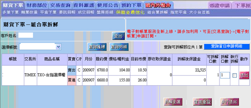 提供選擇權複式委託未平倉單進行拆解功能。 |