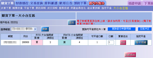 提供大台期、小台期在倉口數對沖互抵功能。 |