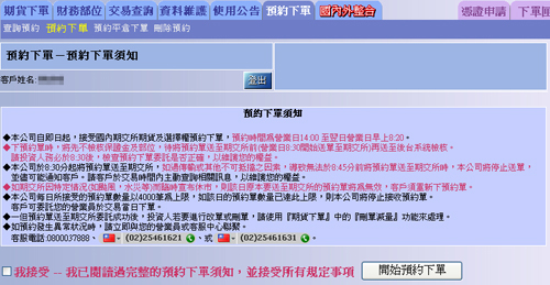 若錯誤則按【取消】,則立即取消此筆委託單。 |