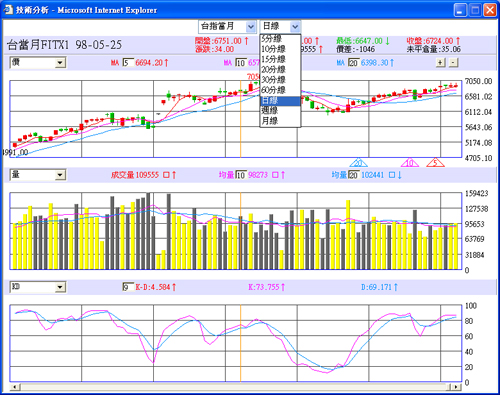 技術線圖可選擇日線、週線、月線、5分鐘、10分鐘、15分鐘、20分鐘、30 分鐘、60鐘 |